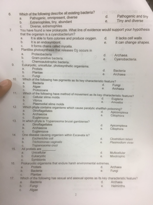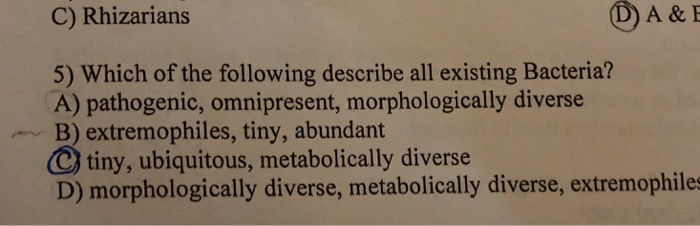 Solved C Rhizarians 5 Which Of The Following Describe All Chegg Com